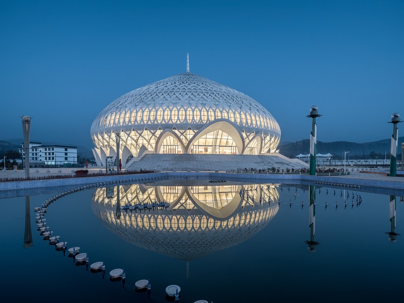 Kết hợp hài hoà giữa hoạ tiết và kết cấu mang cảm hứng từ nhà thờ hồi giáo Oman, nhà hát Grand Linxia là kiến trúc biểu tượng của thành phố Lâm Hạ, Trung Quốc.