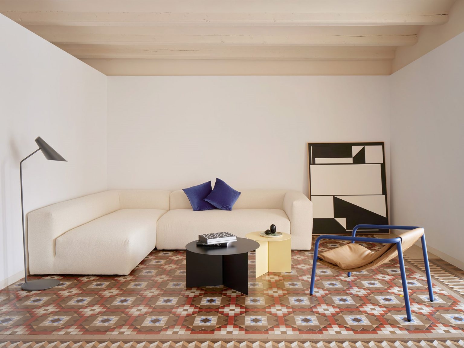 Dựa trên mặt sàn được lát gạch Tây Ban Nha thành họa tiết đẹp mắt, căn hộ Barcelona do kiến trúc sư Raúl Sánchez cải tạo kết hợp hài hòa những yếu tố kiến trúc cổ điển với vật liệu hiện đại, tận dụng tối đa không gian.