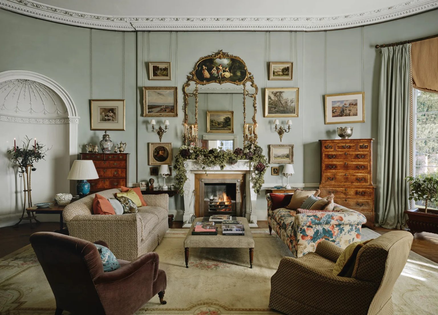Phòng khách Giáng sinh phong cách Maximalism tại ngôi nhà gỗ Somerset thế kỷ 17 của Sean Pritchard. Ảnh: Tom Griffiths