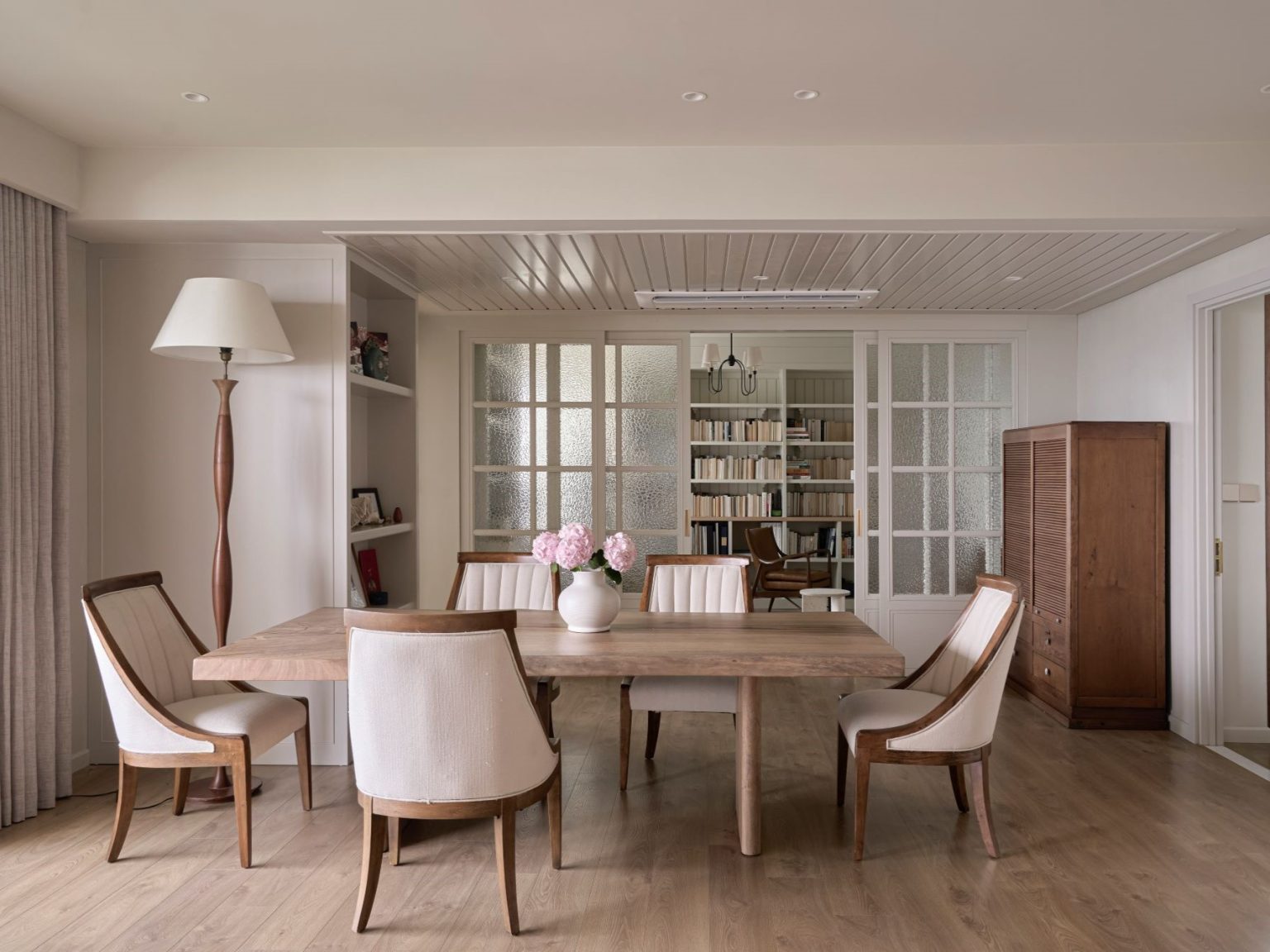 Tinh thần ấm cúng và cổ điển của phong cách Modern Farmhouse được truyền vào không gian của căn hộ cải tạo một cách thanh lịch.