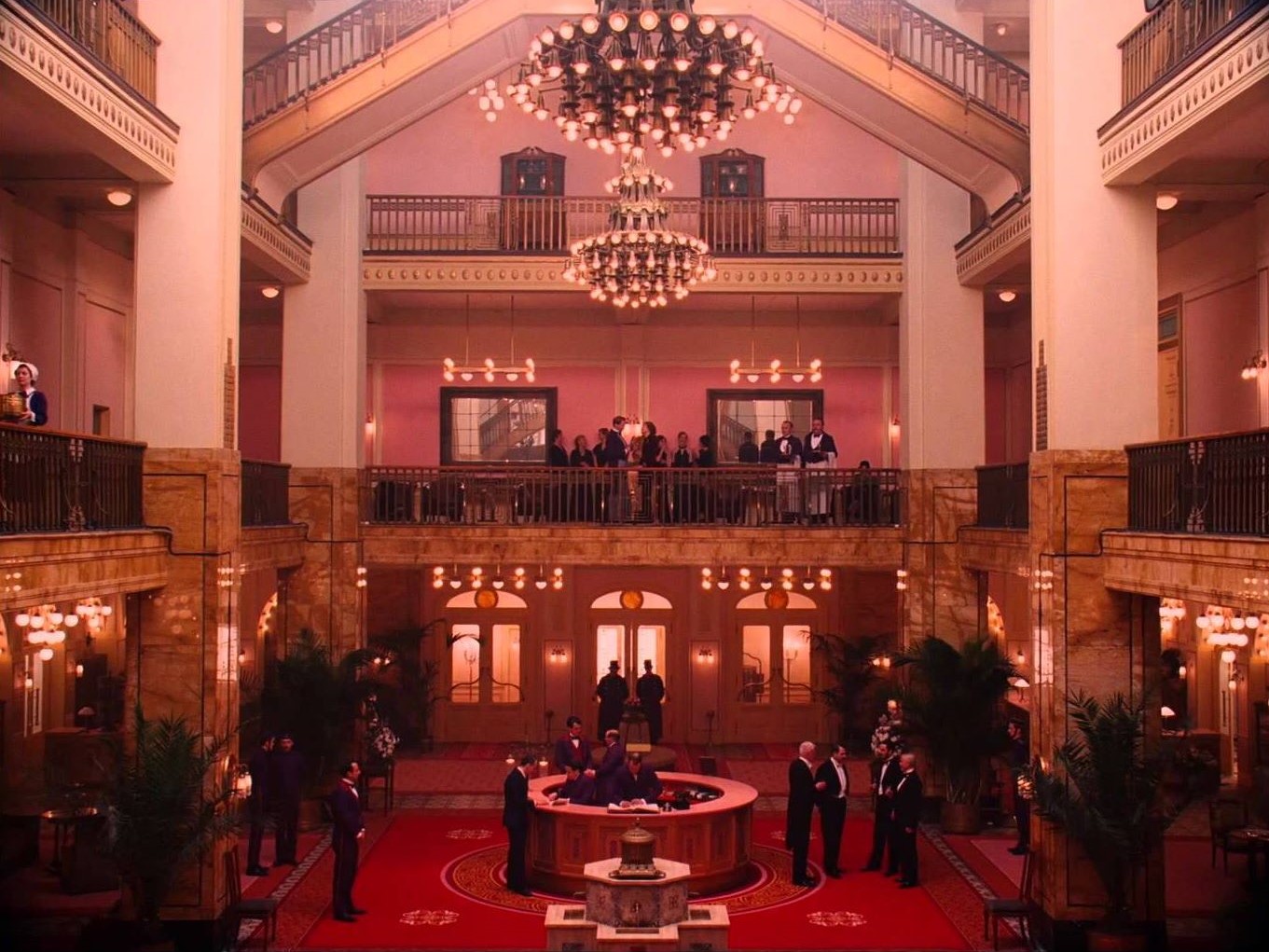 Nhìn sâu hơn vào thiết kế của khách sạn Grand Budapest, người xem thấy được Anderson sử dụng màu hồng đậm của mặt tiền để tạo cảm giác ấm áp và chào đón, trong khi nội thất với tông màu đỏ rượu vang lại mang đến sự sang trọng và bí ẩn. Điểm đặc biệt trong thiết kế của phim là sự chuyển đổi tinh tế giữa các thời kỳ: khách sạn ở thời kỳ đỉnh cao (1930s) với hai màu nóng rực rỡ đối lập với khách sạn thời kỳ suy tàn (1960s) mang tông màu nâu xám buồn tẻ. Điều này cho thấy màu sắc là yếu tố thẩm mỹ có khả năng kể chuyện về thời gian và ký ức.