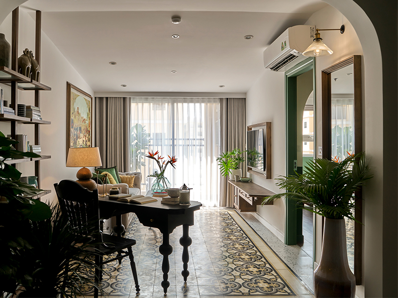 Hai triết lý chính của thiết kế – “Nhà là chốn để về” và “Nhặt lại những tinh túy hợp lý trong quá khứ” – đã tạo nên một tổng thể hài hòa, nơi thanh lịch gặp gỡ sự bình yên. Căn hộ không bị đóng khung trong một phong cách cố định, mà là sự pha trộn giữa Đông Dương, Tây phương, và nét dân dã của người Việt. Một chút hoài cổ, một chút đương thời, kiêu kỳ nhưng không xa cách – tất cả hòa quyện thành một. Cái tình khiến không gian trở nên sống động và chân thật hơn một diễn giải về phong cách cụ thể. Hơn cả một nơi để ở, đây là một không gian để nhớ, để thương và để sống thật trọn vẹn với những giá trị mà gia chủ trân quý.