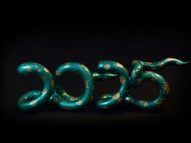 Họa sĩ Lê Huy với sáng tác hình tượng rắn của năm Tỵ 2025 tại Lamphong Studio.