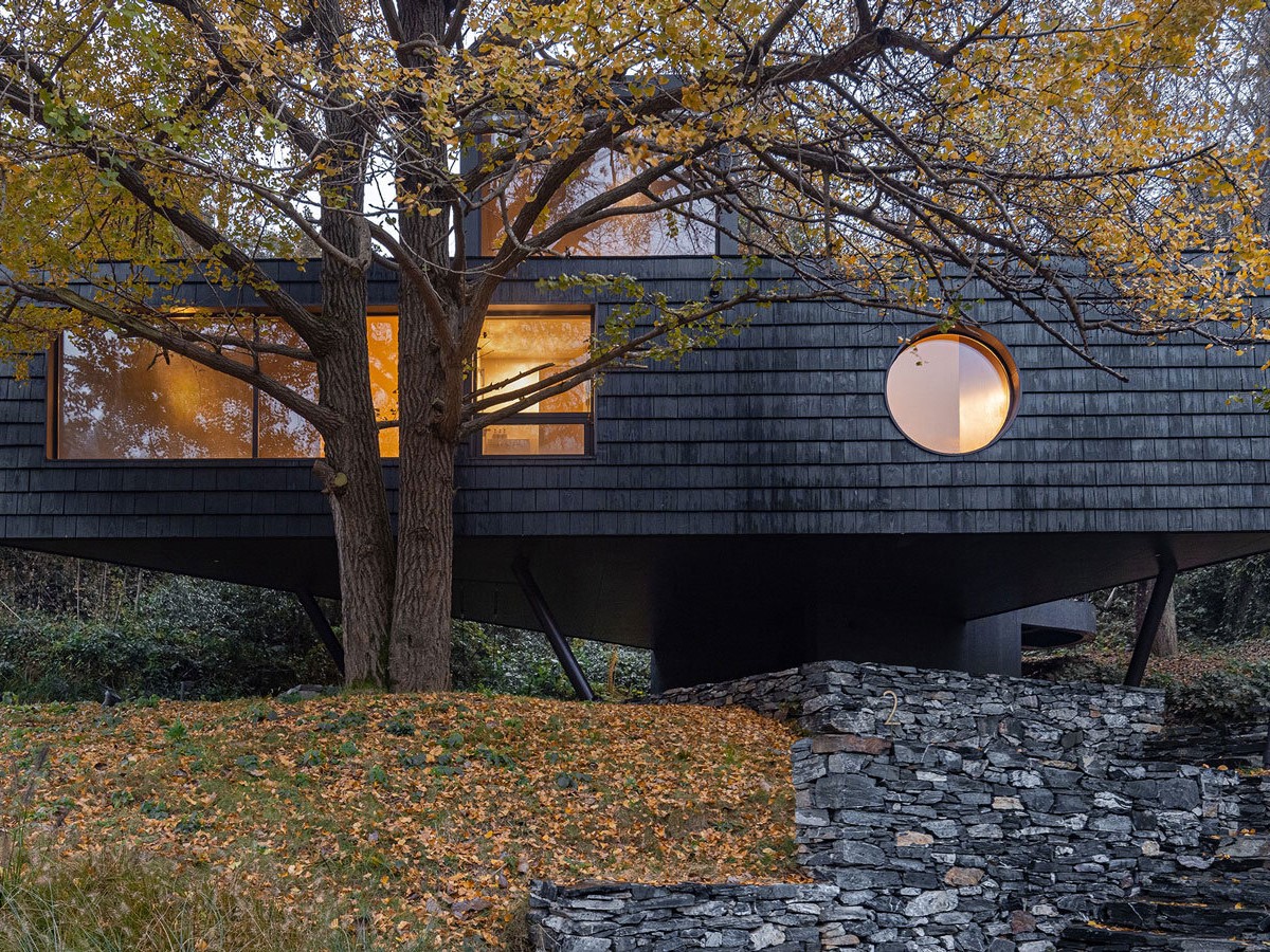 Nhà cây Treehouse gây ấn tượng bởi sự phân tách không gian linh hoạt, sử dụng vật liệu mộc mạc và thiết kế hài hòa với cảnh quan xung quanh, đưa kiến trúc hiện đại hòa mình vào vẻ đẹp nguyên sơ của rừng núi.