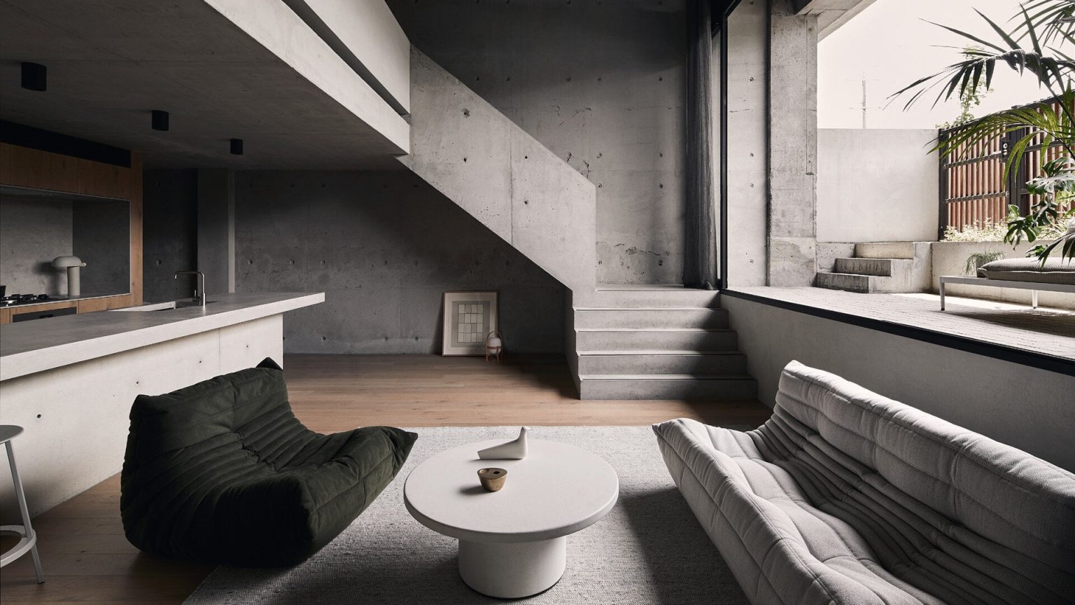 Trong tấm màn xám của bê tông và gỗ sồi, căn hộ tại Melbourne cho thấy sự kết hợp tinh tế của NTK thông qua chất liệu, hình khối và các giải pháp xử lý cao độ trong không gian.