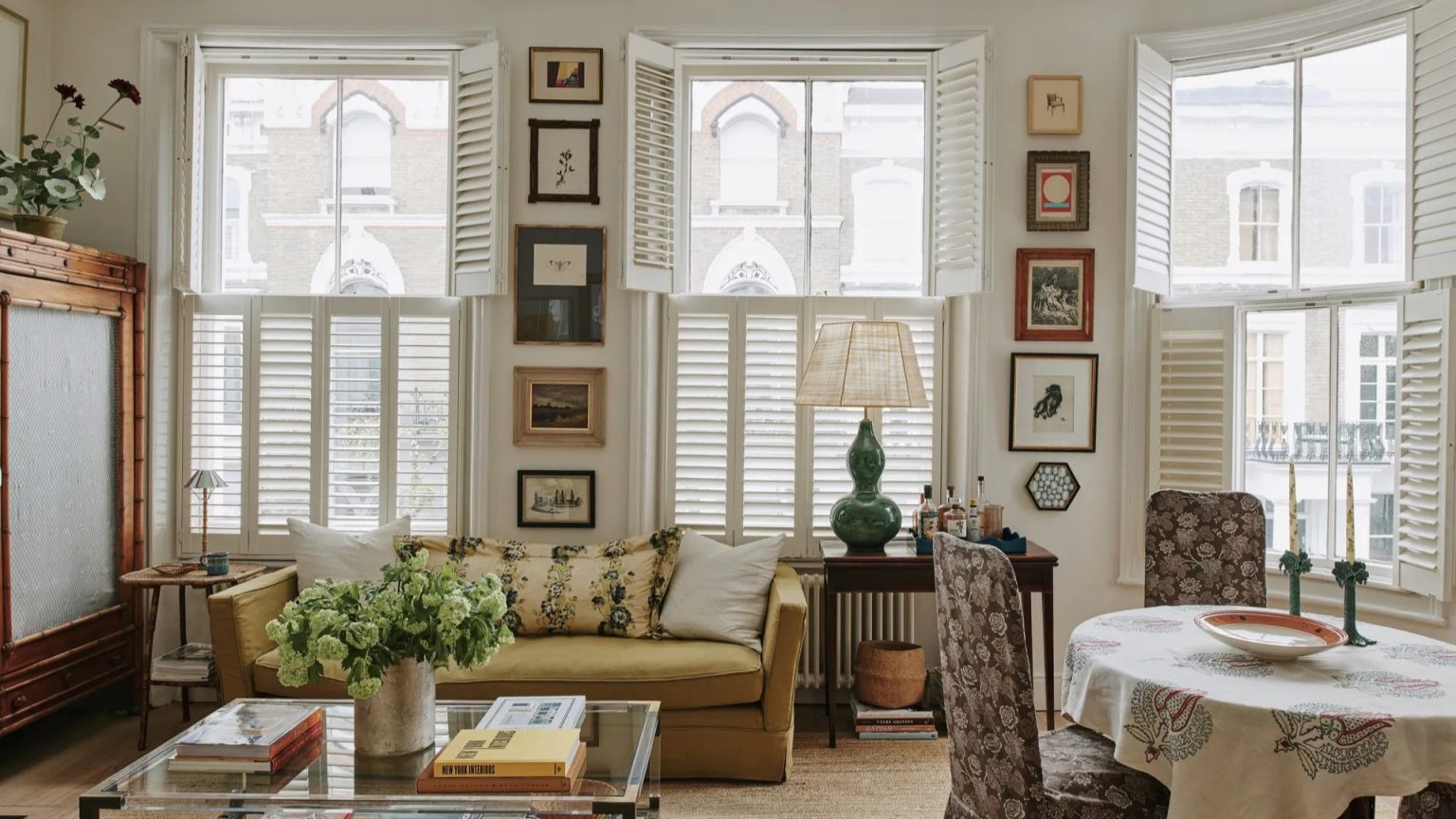 Trong căn hộ Chelsea của Sally Wilkinson, các bức tranh nhỏ được treo dọc giữa khung cửa sổ để tận dụng mảng tường hẹp, đồng thời tạo điểm nhấn thị giác và làm không gian thêm sinh động.Cách sắp đặt này cũng giúp kết nối ánh sáng tự nhiên với nghệ thuật, khiến căn phòng trở nên hài hòa và giàu chiều sâu hơn.