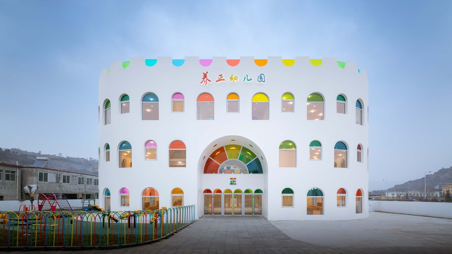 Đặc điểm nổi bật thứ hai của nhà trẻ là toàn bộ ô cửa đều được thiết kế theo hình vòm đặc trưng. Lấy cảm hứng từ những ngôi nhà hang động truyền thống trên cao nguyên Hoàng Thổ – nơi công trình được đặt, kiến trúc hình vòm không chỉ là một nét văn hóa đặc sắc mà còn tạo nên một tổng thể hài hòa, mềm mại. Các ô cửa vòm với kích thước đa dạng được sắp xếp một cách nghệ thuật trên các mặt tường, khiến tổng thể công trình khi nhìn từ xa trông như một chiếc bánh sinh nhật ngọt ngào và đầy mời gọi.