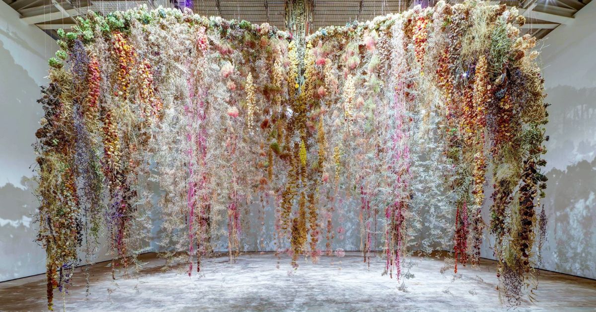 Nghệ sĩ người Anh Rebecca Louise Law đã đưa hoa bước vào thế giới nghệ thuật đương đại, biến chúng thành một ngôn ngữ sáng tạo riêng biệt. Từ những cánh hoa tươi và khô được treo lơ lửng trong không gian, cô tạo nên những sắp đặt quy mô lớn nhưng vẫn giữ trọn vẻ mong manh, tinh tế vốn có của tự nhiên – một sự cân bằng giữa sức mạnh thị giác và sự thanh tao đầy cảm xúc.