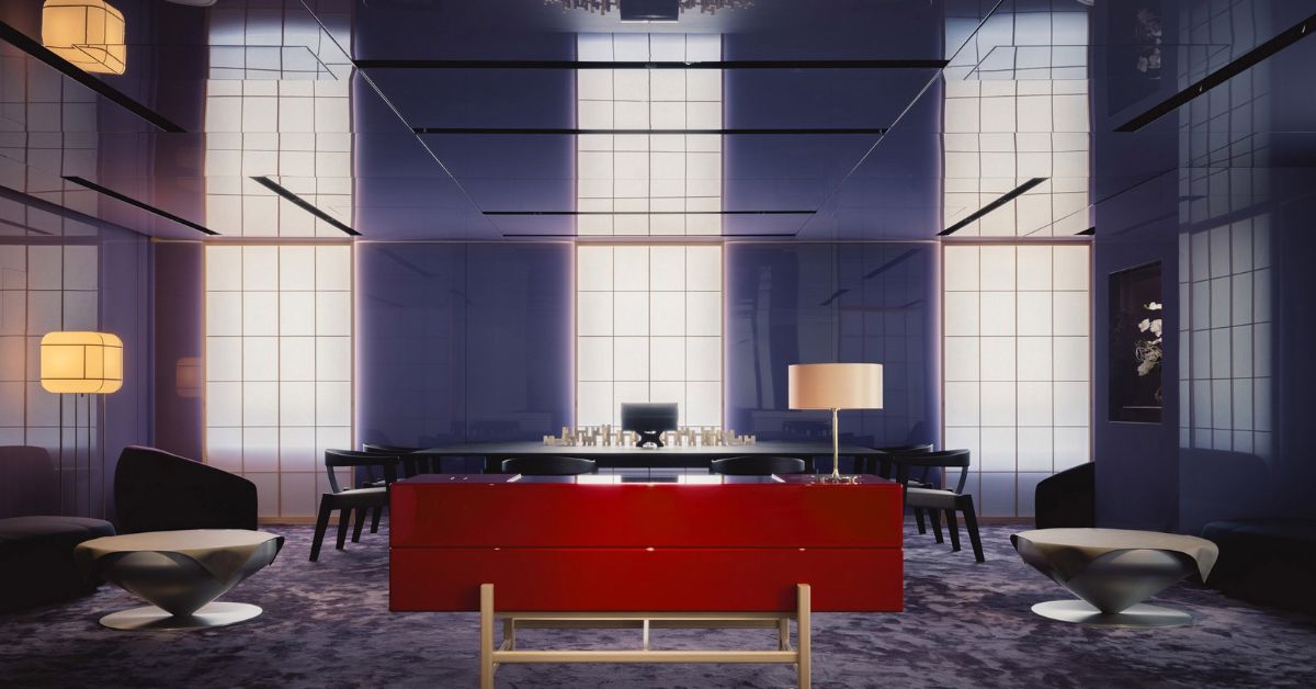 Một gian phòng được phủ toàn bộ bởi màu tím Edo – Sắc màu đại diện cho giới quý tộc Nhật Bản.