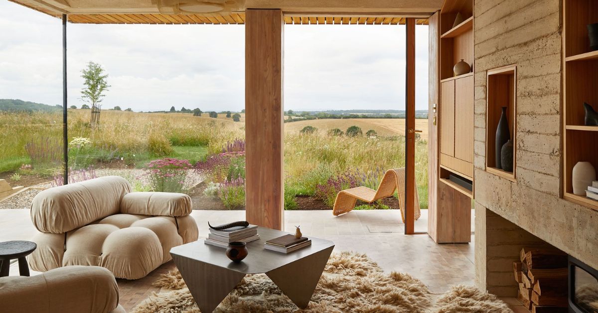 Một trong những góc đặc sắc nhất của ngôi nhà là ô cửa góc không khung mở hướng nhìn ra sân bê tông và cánh đồng phía xa – một nơi lý tưởng để ngồi đọc sách, nhâm nhi trà nóng hoặc đơn giản là lắng nghe tiếng gió lướt qua cỏ.