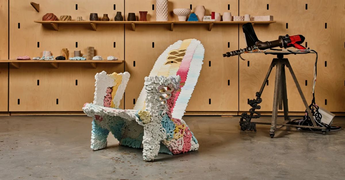 Tại triển lãm Plastic Reimagined, các học viên của khóa học ARCH 6050, khoa Thiết kế & Nghiên cứu Kiến trúc tại Trường Kiến trúc, Đại học Công nghệ Georgia đã giới thiệu thiết kế ghế ngoài trời Adirondack được làm từ nhựa tái chế, thể hiện tư duy về vai trò của vật liệu tái chế trong không gian công cộng. Vật liệu phế thải gồm nhựa HDPE và PLA được thu gom từ khuôn viên trường, sau đó được nghiền nhỏ rồi ép thành tấm bằng máy phay CNC định tuyến hoặc đúc thành khối. Từ kiểu dáng nguyên bản của Adirondack, các sinh viên đã có những khám phá đa dạng trong chế tác, từ mô hình voxel, đúc khuôn tùy chỉnh và lắp ráp mô-đun. Mỗi thiết kế đều được đánh giá kỹ lưỡng về khả năng công thái học, độ ổn định kết cấu và tính thích ứng của quy trình thiết kế