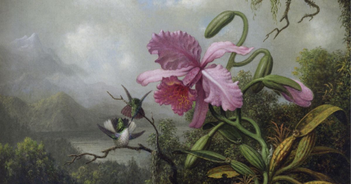 Bức tranh Orchid and Hummingbirds near a Mountain Lake của Martin Johnson Heade.